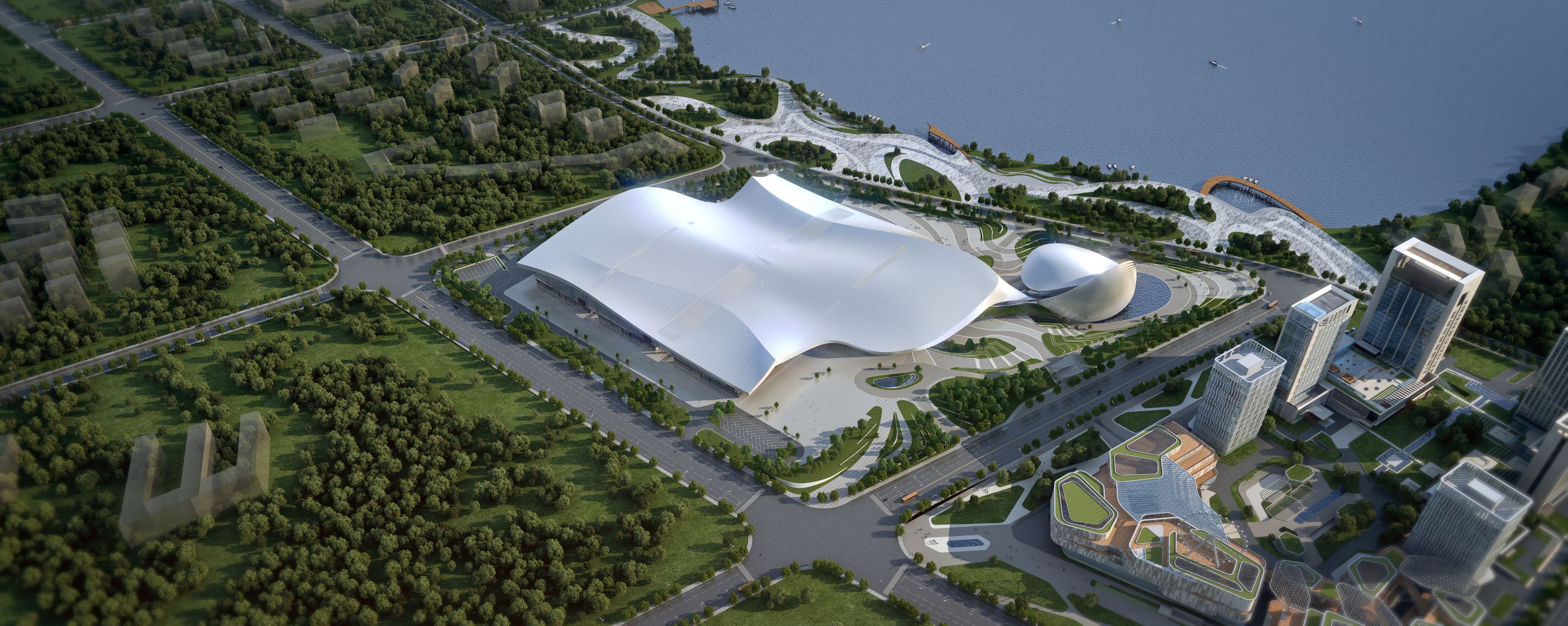 簡介:煙臺八角灣國際會展中心位于煙臺開發(fā)區(qū)八角街道,占地13.9萬平方米,建筑面積24.6萬平方米,總投資約33億元,由美國著名設(shè)計公司AECOM根據(jù)第五代會展綜合體定位設(shè)計,以“城岸云浪·海上云貝”為設(shè)計理念,將煙臺的碧海 ...